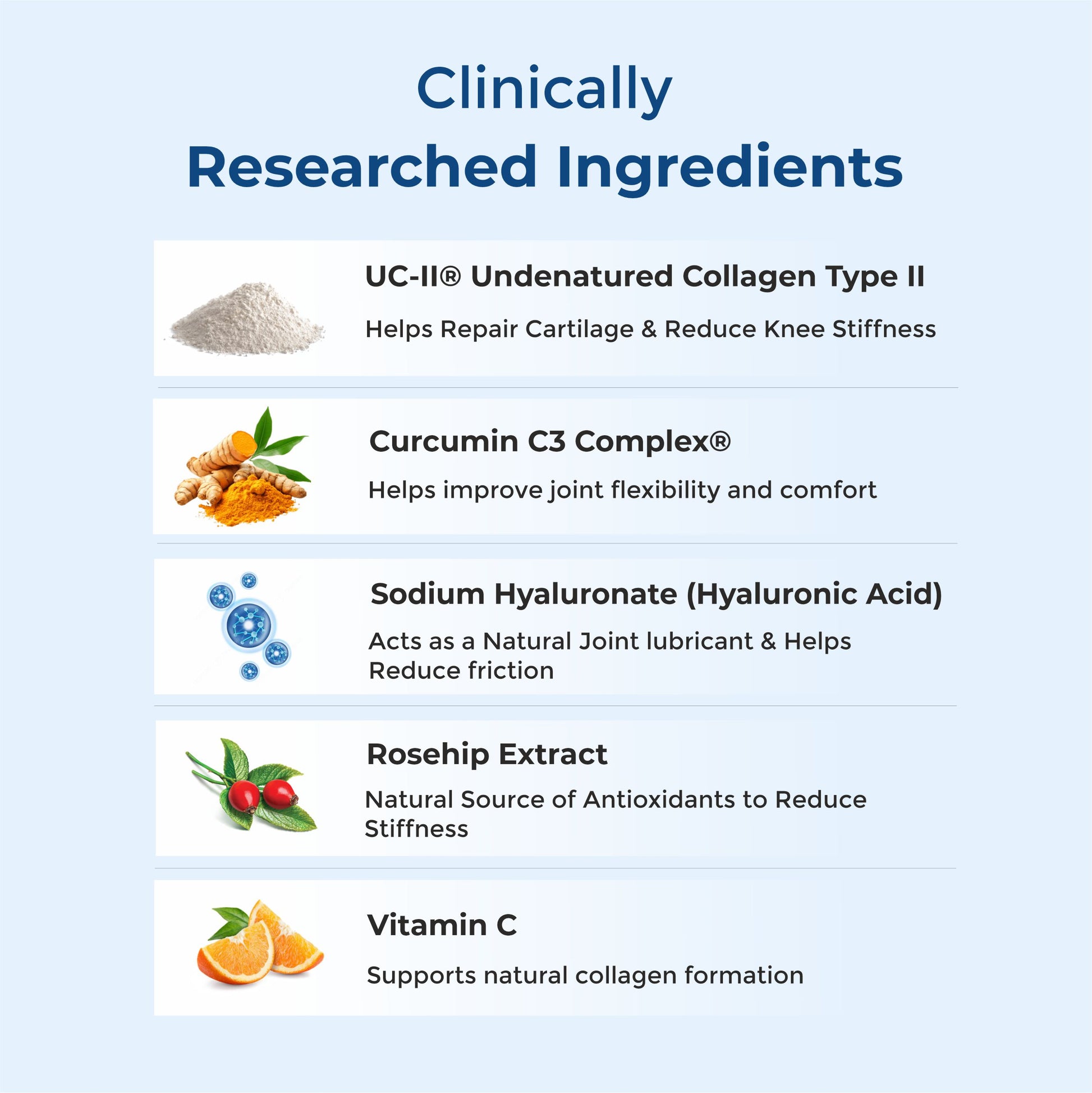 Unlike single-ingredient supplements, Mobivox UC combines five powerful, clinically researched ingredients that work synergistically to support joint comfort, flexibility, and long-term strength.