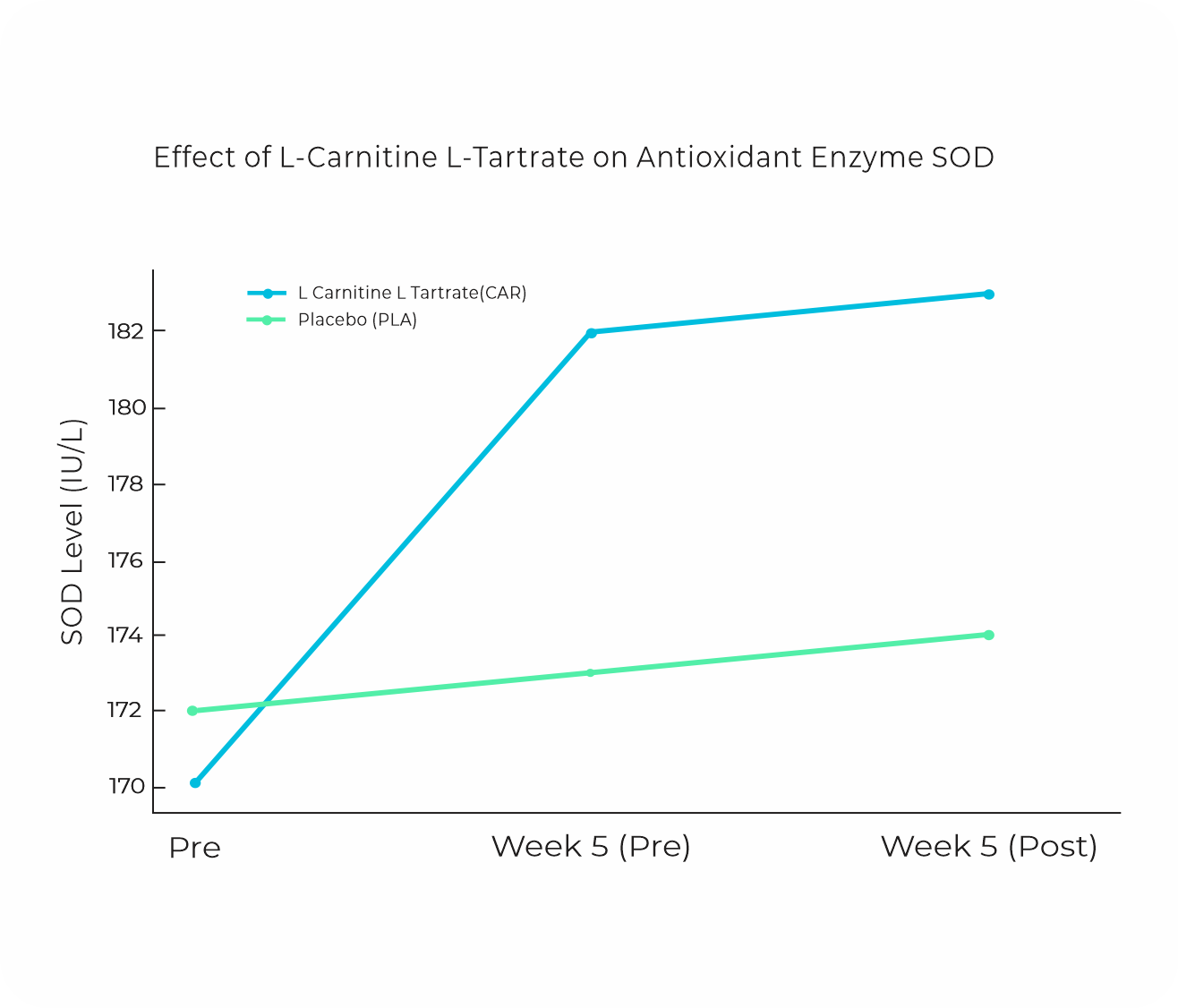 A randomized, double-blind study evaluated the effects of L-Carnitine L-Tartrate (LCLT) on muscle recovery during regular training. Over 5 weeks, LCLT supplementation led to a significant increase in the antioxidant enzyme SOD, a reduction in serum creatine kinase (CK) -a marker of muscle damage and overall improved post-exercise recovery.