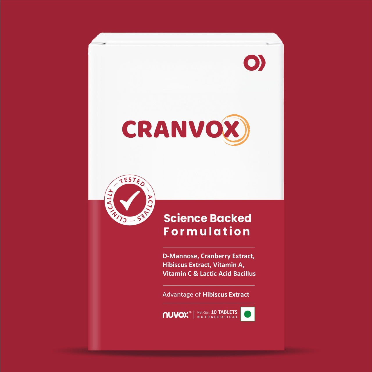 Cranvox is a thoughtfully crafted blend of cranberry extract, hibiscus extract, D-Mannose, Vitamin C, Vitamin A, and Lactic Acid Bacillus, designed to naturally protect and support urinary health. By preventing harmful bacteria like E. coli from adhering to the urinary tract, strengthening bladder integrity, boosting immunity, and restoring healthy flora, Cranvox offers a safe and effective way to reduce the risk of recurrent urinary tract infections while minimizing reliance on antibiotics.